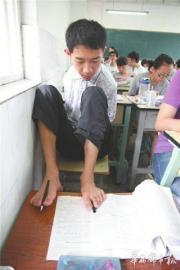 今年是攀枝花“无臂考生”彭超第二次参加高考,他成为四川首批享受延时照顾政策的特殊考生之一——每科考试时间延长了45分钟。彭超表示,他用脚答题速度慢,增加的30%时间,使他能有条不紊地思考和答题,“对我帮助太大了,不然今年也考不到这个成绩。”