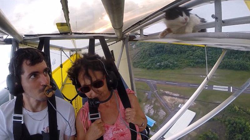 近日,法属圭亚那一架滑翔机在高空飞行时,机翼惊现猫咪。(网页截图)