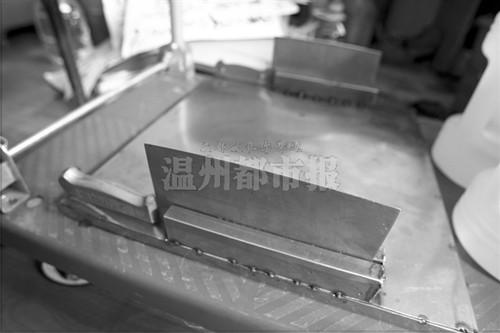 昨天上午,微微的闷热。13岁的永嘉女孩小谢面对记者的探访,在家门口表演赤脚踩刀刃。她的父亲谢继奎搬来道具,一个带有两道凹槽的不锈钢刀架,然后将两把菜刀刀刃朝上插入刀架。小谢赤脚轻盈地踏上两面刀刃……谢继奎拿来两瓶共5公斤重的瓶装水,让踩在刀刃上的女儿提着舞动;他甚至还让女儿踩着刀刃写毛笔字,他坚信,经过长期练习,女儿站在刀刃上写的这些书法作品可卖出不菲的价钱,他不断以此鼓励女儿勤加练习。“这也是为了增加表演的观赏性。”
