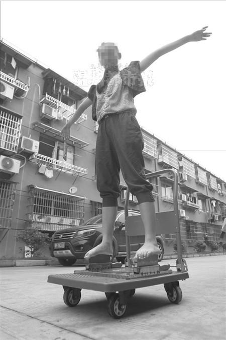 仅13岁的永嘉女孩小谢,从七八岁开始练习光脚踩刀刃表演的“绝活”,跟着父亲四处漂泊卖艺。