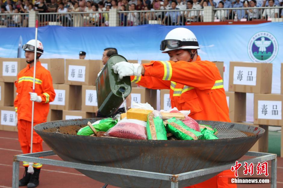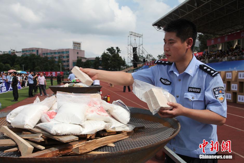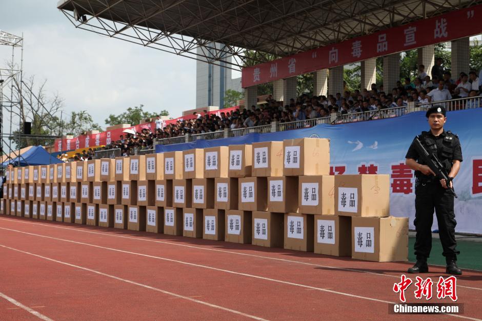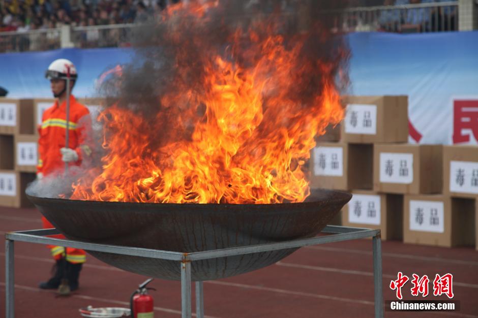 6月23日,贵州省禁毒委员会、省公安厅在贵阳举行“向毒品宣战”暨2015年公开销毁毒品活动。当天,来自公安机关及各界群众代表3000余人参加了活动,现场焚烧了近年来贵州省公安机关缴获的海洛因、冰毒等各类毒品1200余公斤。谢高攀 摄