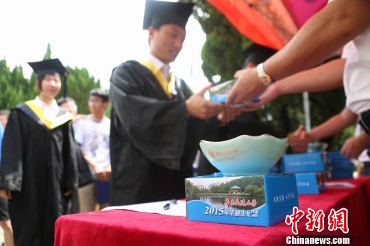 中新网南昌6月23日电 (姜涛)“去年第一次见到学长收到学校发的这个碗,就感觉蛮新奇的。在领这个碗之前,我和同学们盼了好几天。”华东交通大学2015届毕业生师海坤告诉记者。