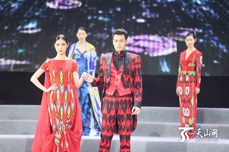 大型时装秀《时尚的艾德莱斯》点亮了启动仪式。新疆本土服装设计师将艾德莱斯作为创意元素,将民间工艺与现代理念和国际市场需求完美契合, 让传统的艾德莱斯“洋”起来。