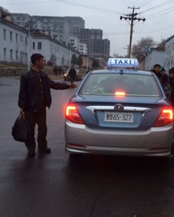 平壤市内并非所有道路两侧都允许出租车停靠。记者最近来到金日成综合大学后门,这里出租车可以停靠,且传说中比较容易打车。但是站了半天,记者发现,大多数出租车上都有客人。记者一边怀念国内的打车软件,一边坚持不懈地伸手,20多分钟后,终于成功打到一辆出租车,心情无比兴奋。定睛一看,车牌尾号居然是单数,再一看,车后座上已经坐着一位男士。
