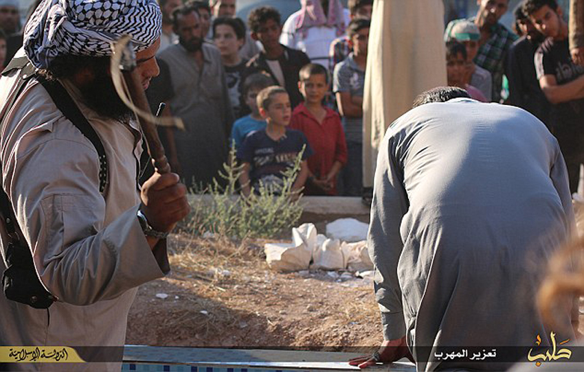 “伊斯兰国”组织说,这些雕像是从一名走私者那里截获的,照片显示走私者还受到“惩罚”。