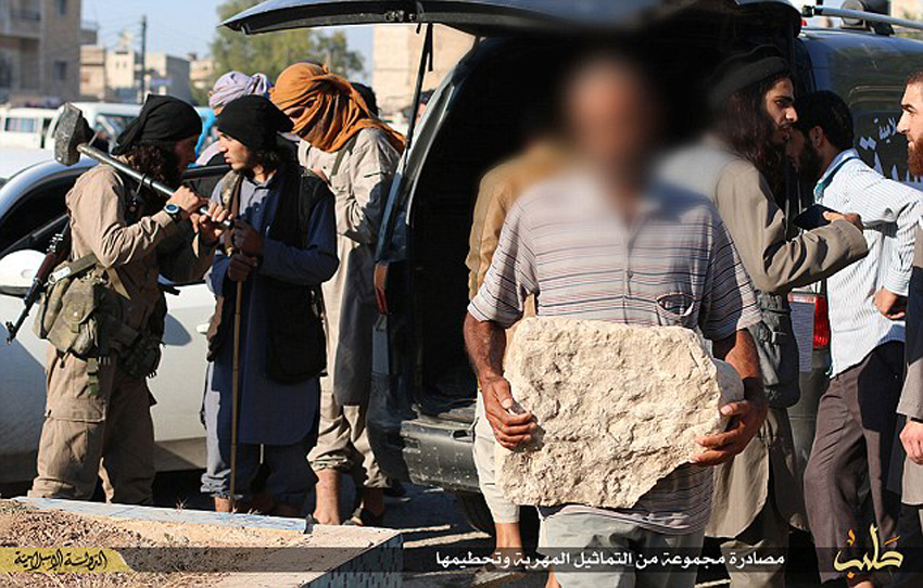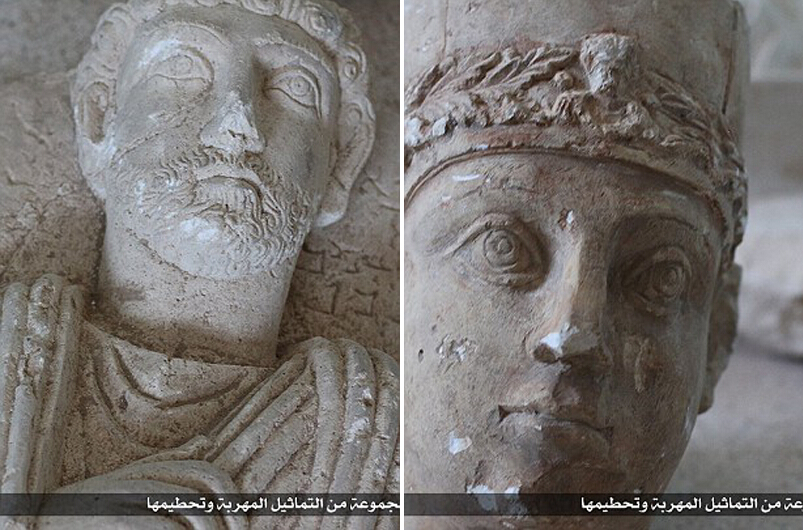 7月3日电 据外媒报道,一些疑似由极端组织“伊斯兰国”(ISIS)发布的些照片显示,武装分子砸毁了其称之为从叙利亚古迹帕尔米拉抢来的文物。