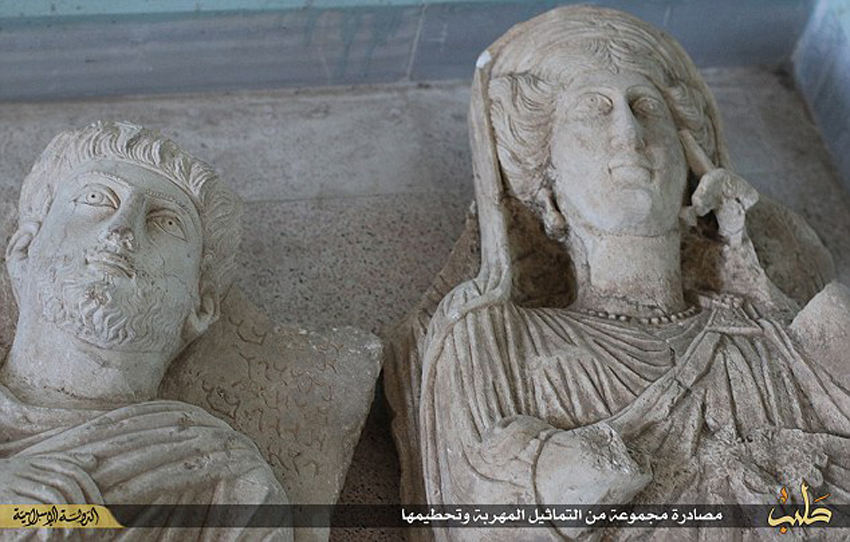 据外媒报道,一些疑似由极端组织“伊斯兰国”(ISIS)发布的些照片显示,武装分子砸毁了其称之为从叙利亚古迹帕尔米拉抢来的文物。