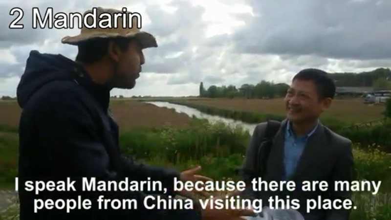 报道说,本以为这名男子只会说与卖画有关的内容,但事实上,他可以用外语进行日常交流。在这段视频中,他最开始用英语做了自我介绍,接着一一展示所会的各种语言。他还与几名中国人用普通话交流,甚至开玩笑让中国游客做北京烤鸭给他吃。