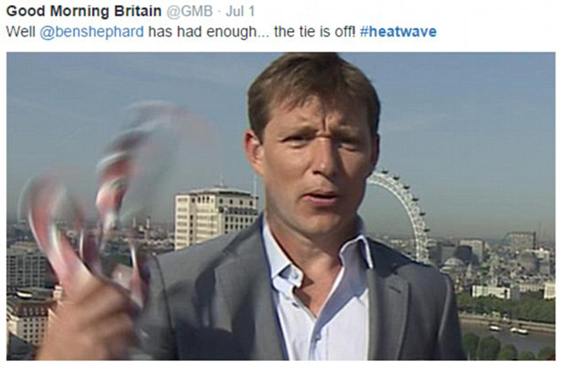 如此炎热的天气当然不适合穿西服,这位电视主持人已经证明了这一点。(网页截图)