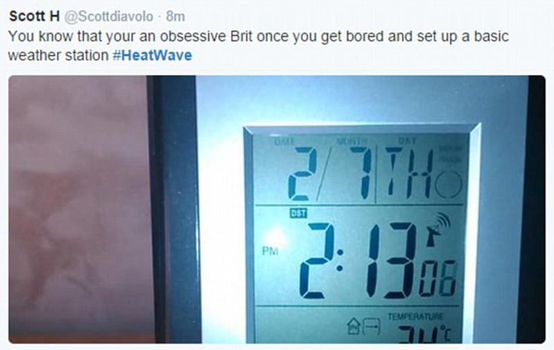 随着英国迎来史上7月最热的一天,Twitter上出现大量与炎热有关的幽默话题。(网页截图)
