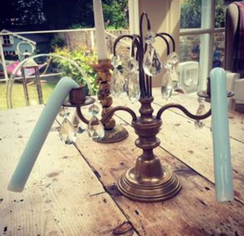 电视主持人菲妮·科顿 发布自家萎蔫的烛台照片,宣称“蜡烛已经放弃抵抗炎热”。(网页截图)