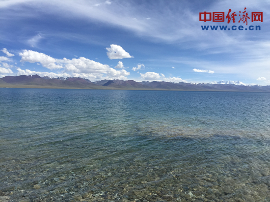 (水天相融的天湖纳木错。中国经济网记者 代玲摄)