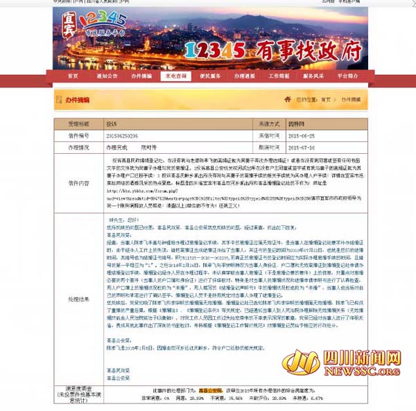 高县公安局政治处主任李响告诉四川新闻网记者:“现在户口迁移政策时有变动,我们去核实一下是否有这样的事情再回复你们。”