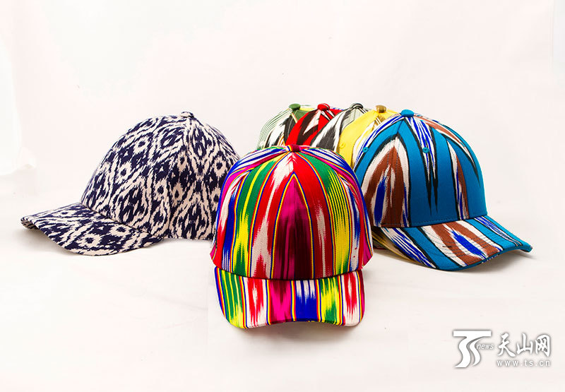 (赵怡设计的创意产品——艾德莱斯绸帽子)
