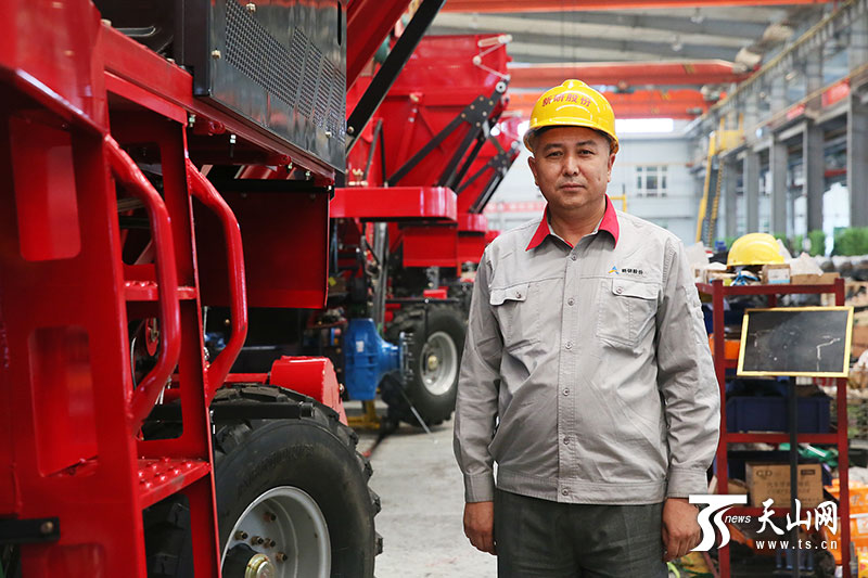 天山网讯(特约记者任江 高原玲子摄影报道)踏进位于乌鲁木齐经济技术开发区(头屯河区)的新疆机械研究院股份有限公司(以下简称新研股份)生产基地,人好像突然变矮了——两三人高的大型农牧机械随处可见,从高大的机械旁边走过,要仰着头才能看清机械的全貌。阿力木·买买提吐尔逊就是这些“巨无霸”的创造者之一,他已和农牧业机械打交道23年了,仍乐此不疲。