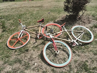 祁钊告诉扬子晚报记者,由于自行车的车架部分都是竹子,主车架竹子互相衔接的地方用的是麻纤维,后来又加了一层玻璃纤维使它更加坚固。