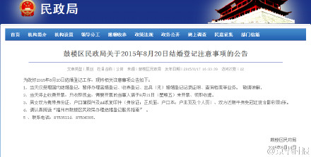 @京华时报:【福州一民政局“七夕”只办结婚不办离婚】福州鼓楼区民政局官网发布公告称,8月20日“七夕”当天,将仅受理国内结婚登记,暂停办理离婚、单身证明等业务。该民政局工作人员表示,不仅七夕,520、214等恩爱节日均不办理离婚。“这些节日是办结婚的高峰期,我们忙到晚上8点也忙不完。”京华记者马金凤