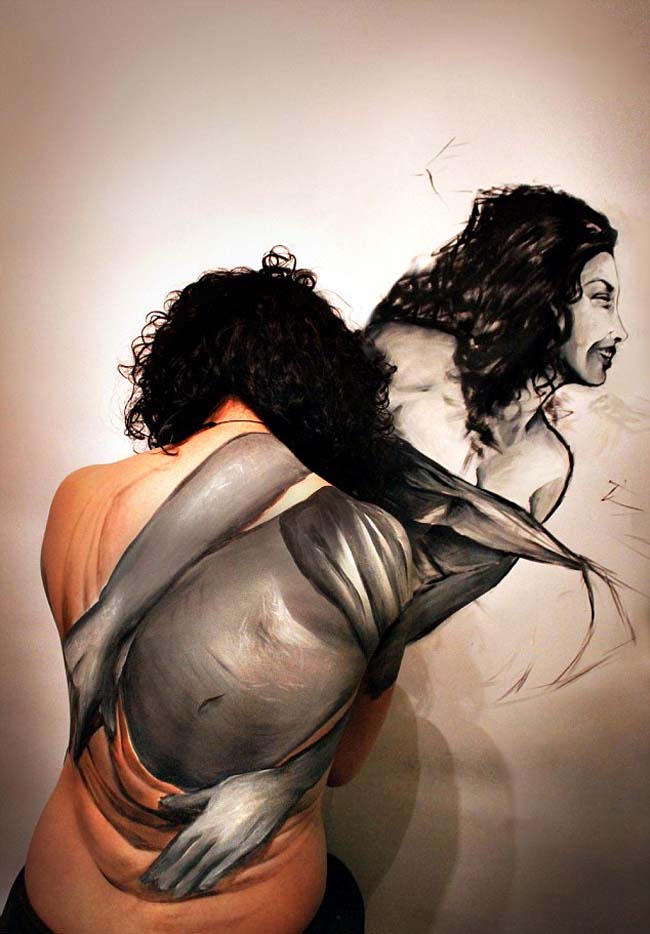 在葡奇的这一系列彩绘作品中,有女模特将其上半身“撕裂”,人们甚至还能感受到血肉相连的触感;还有模特似乎正在将自己的胸口“撕裂”,露出其中的内脏;甚至还有模特正从她的身体中“逃离”,如灵魂脱离躯壳一般。大胆的创意让人跌破眼镜。