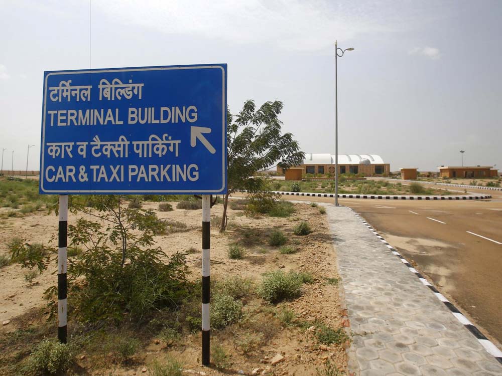国际在线专稿:综合路透社与英国《每日邮报》报道,在印度拉贾斯坦邦(Rajasthan)偏远的沙漠小城贾沙梅尔镇(Jaisalmer)上,有一座机场已建成两年半有余,总耗资1700万美金。但从建成起到现在从未有一个人使用过这座机场,整座机场被人遗忘在荒漠之中。
