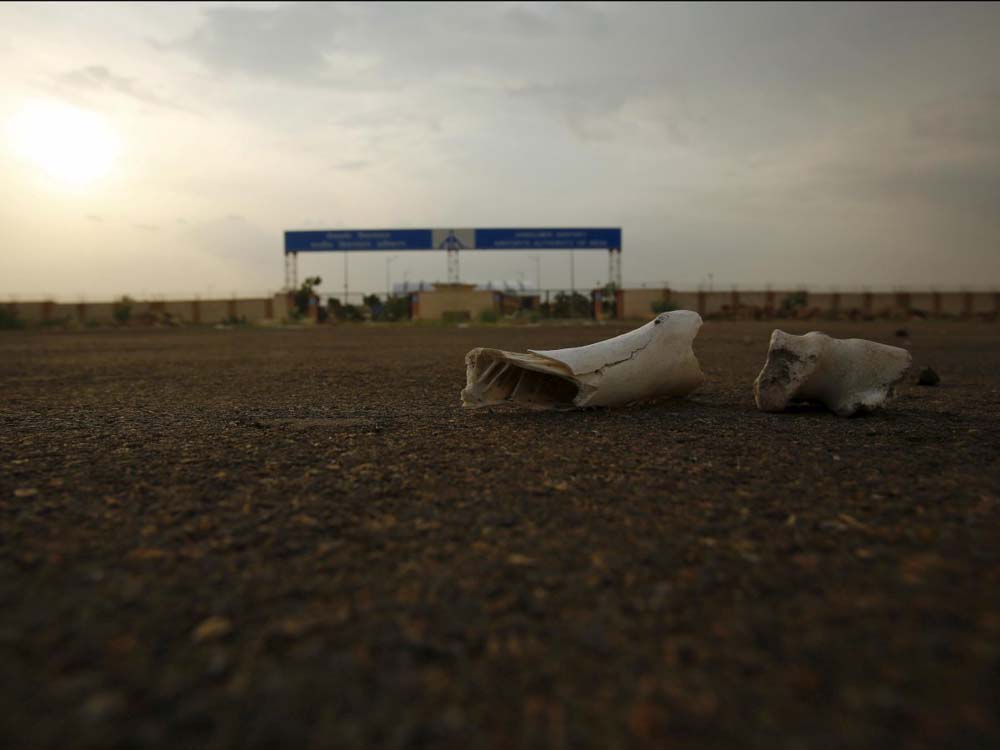 通往机场的路上散落着动物的骨架(网页截图)