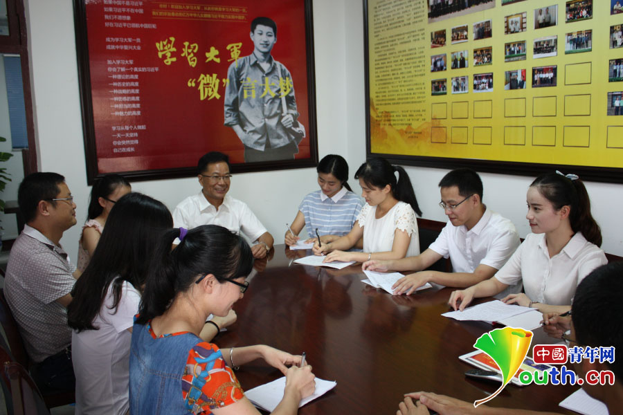 “学习大军”每周召开例会,总结经验、研习写作、提升水平。中国青年网记者 吴楚 摄