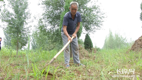 (苗明文为烈士墓清理杂草。长城网石柳月摄)