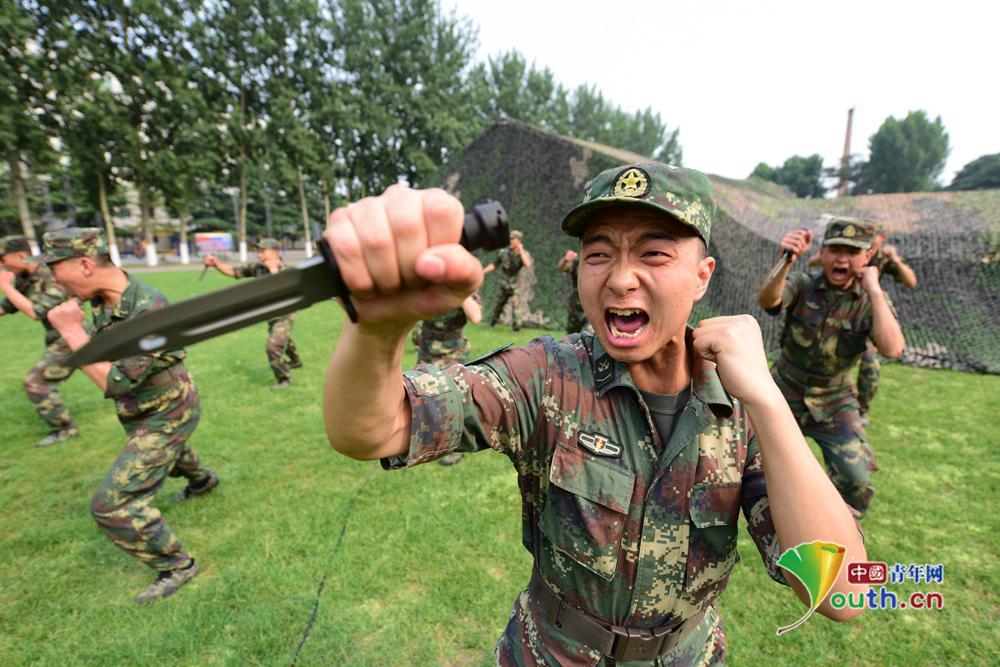 官兵们进行匕首操练习,磨练军人血性意志。旅政治部供图