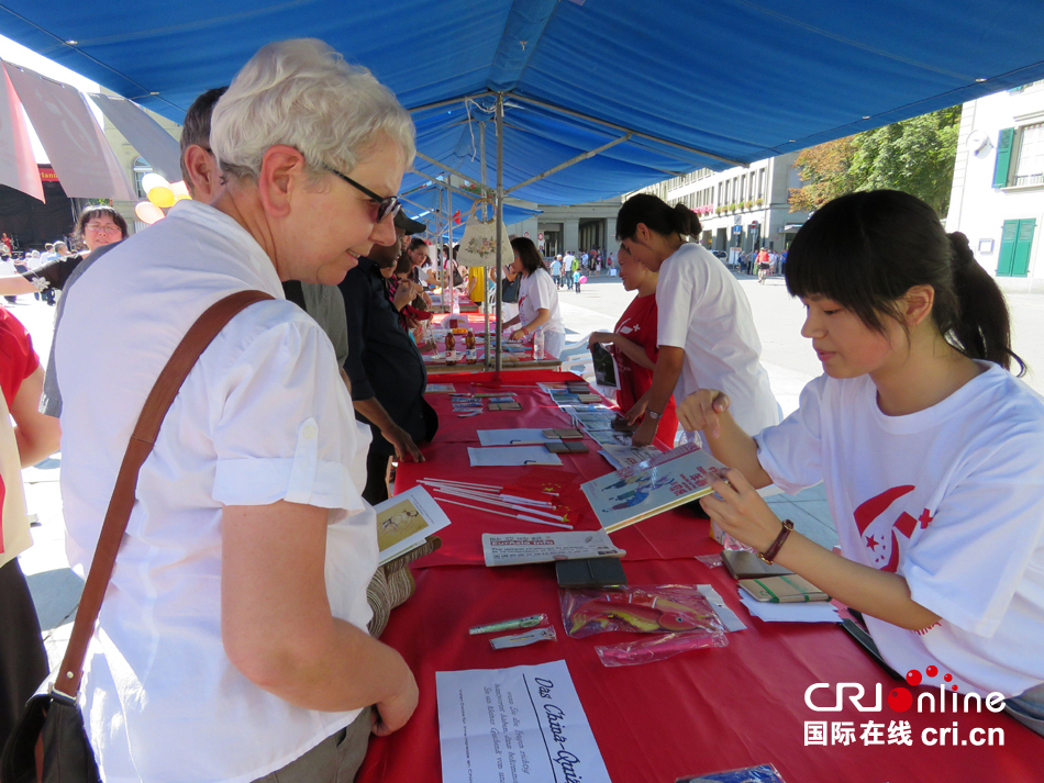 国际在线报道(驻瑞士记者 张婧昊):今年是中国和瑞士建交65周年,为纪念两国交往发展的这一里程碑,中瑞双方举行了各类庆祝活动。近日,由瑞士中国学人科技协会、全瑞学联、中文教师协会联合举办的“遇见中国”大型中国文化活动在瑞士首都伯尔尼隆重举行。参与当天活动的演员、工作人员及参展人员约有350余人,吸引了当地众多名民众驻足观看、参与体验。