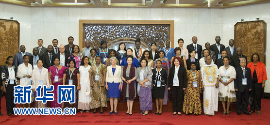 这是彭丽媛与博科娃一同会见参加国际女童和妇女教育研讨班的亚非国家学员。新华社记者黄敬文摄
