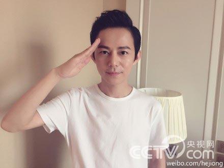 何炅向老兵敬礼