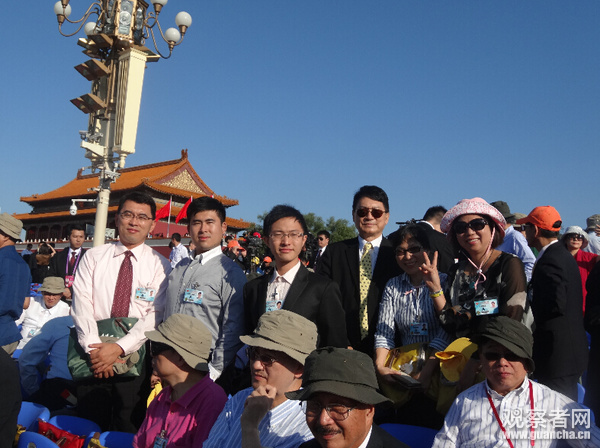 王炳忠:你好。确实很激动,一个最大的感受就是体会到今天我们都是胜利者。最后在放和平鸽与气球的时候,跟我同行的台湾年轻朋友也讲了类似的话。回想七十年前,我们真的是一个战胜国,这是这次活动带给我们的荣耀感。这种荣耀感不仅属于中华儿女,也属于一些国际友人。在我前面坐着的是美国飞虎队老兵,我们都是二战时站在世界正义的一方,都是反对用侵略的方式去压迫别人。所以今天我印象很深刻的是,习总书记在讲话的时候特别提到,中国不管发展到什么地步,都不会用强权来强压弱小,不会把我们曾经有过的悲惨经验再加诸到别人身上。