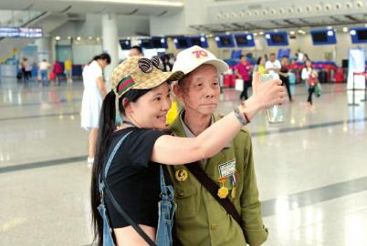 4日下午,一架由北京飞往成都的航班,载着钟华、陈家乾、郑维邦、刘中柱、黄开仁5位抗战老兵以及4名英烈子女李克林、饶毓秀、柴陵华,朱家林,顺利抵达双流机场。“得到认可了,这是国家给我们川军的荣耀!”99岁的抗战老兵郑维邦坐在轮椅上,却豪气不减,“乘车参加阅兵时,我很想丢开拐杖再走一次!”