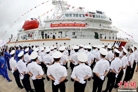 8月22日,浙江吨位最大、装备最先进的“海巡22”船列编浙江海事局。该船总长86米,型宽13.6米,满载排水量约2700吨,最大航速18节,续航能力5000海里,造价近2亿元人民币。据悉,该船为中国海事系统第四大海巡船,具备在中国南海以及钓鱼岛海域巡航能力。中新社发 华志波 摄