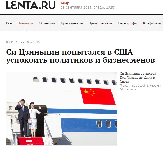 紧接着,Lenta新闻网转入正题,发表了《习近平试图让美国政商两界放宽心》的文章。文中指出,中国国家主席访美首日在西雅图发表演讲。面对对中国发展怀有疑虑的听众,习近平明确表示,他的国家不会操纵汇率以扩大出口,不会歧视外国投资者以保护国内资本,中国将加快市场开放步伐,并在人权方面作出进一步的努力。