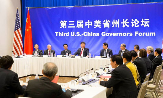 9月22日,国家主席习近平在西雅图出席主题为“清洁能源与经济发展”的第三届中美省州长论坛并发表讲话。 新华社记者 黄敬文摄