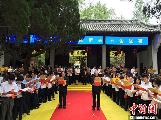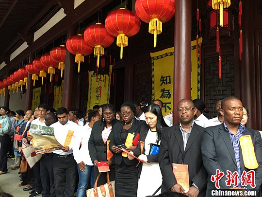 9月28日,来自16个国家的孔子学院院长一同来到浙江衢州孔子南宗家庙,为这位儒学创始人诞辰2566周年举行祭祀典礼。祭祀分为礼启、献礼、颂礼、礼成四章。中新社记者 吴雨辰 摄