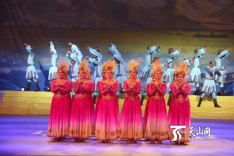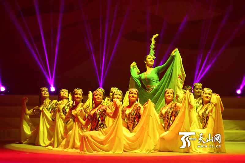 天山网喀什讯(记者刘霞 实习记者蒲志良摄影报道)为庆祝中华人民共和国66周年、新疆维吾尔自治区成立60周年,9月28日晚,中共喀什地委、喀什地区行署在喀什噶尔影剧院举办了一场“我和我的祖国”为主题的文艺晚会。