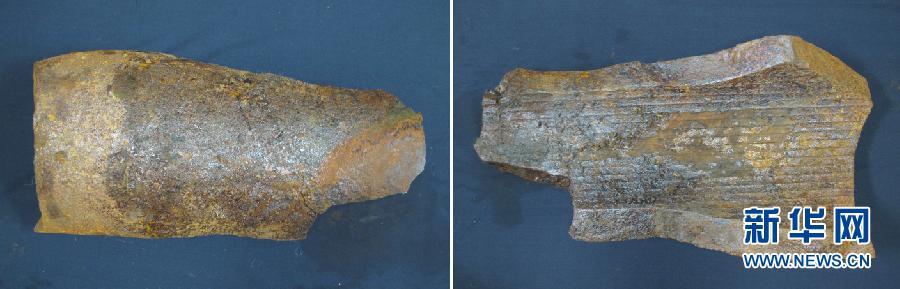 (这是考古现场发现的152毫米副炮弹头 9月25日摄)
