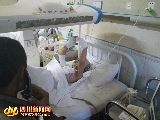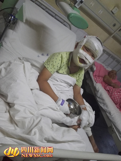 今天下午,四川新闻网记者来到川北医学院附属医院,烧伤的2名儿童正在烧伤科治疗。主管医生介绍称,受伤严重的小孩杨祥震属三度烧伤(烧伤中最严重),全身烧伤面积达20%以上,但各项生命体征平稳;小孩彭曾烧伤面积较小。