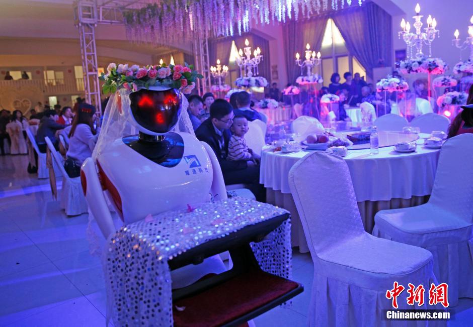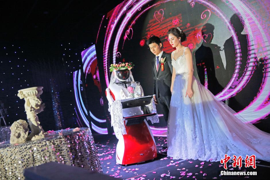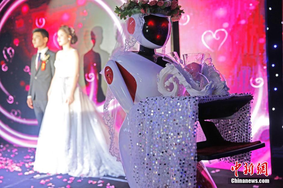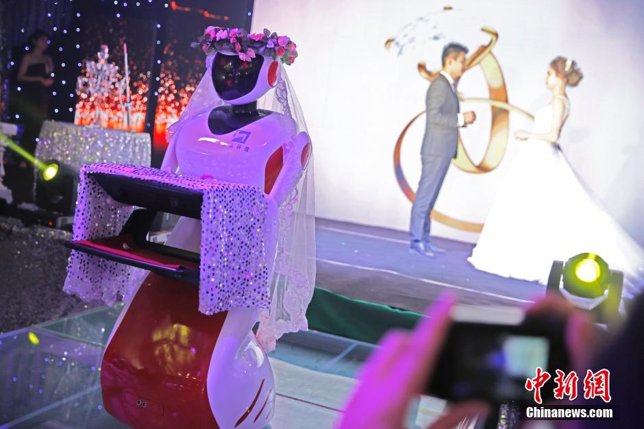 11月1日,在天津的一场婚礼上,一台名为“昊越”的机器人担任了“伴娘”的角色,见证了一对新人的幸福时刻。据悉,该机器人由天津一家科技公司研发的送餐机器人改造而成,它可以为新人递上婚戒,送上语音祝福等。
