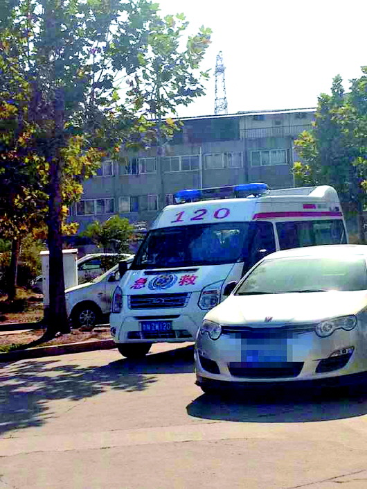 120急救车赶到现场。 本报记者 李阳 摄