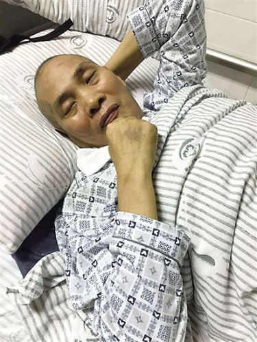 在医院照顾李兴禄的妻子张小辉哽咽着说,2013年9月,丈夫因身体不适到新桥医院检查,结果查出是肺癌。