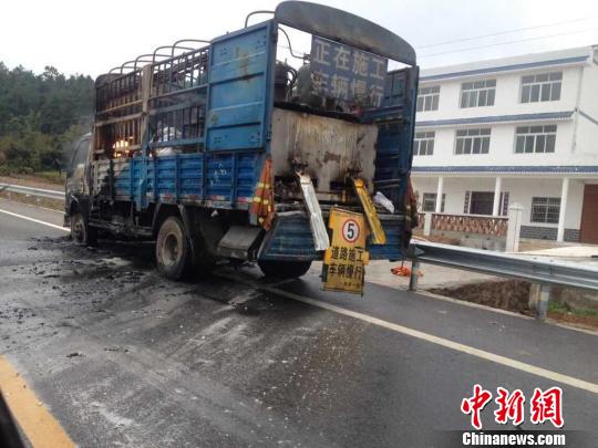 据悉,事发车辆系下寺至普安公路上规划交通指示线的工程货车。事发前,货车上载有几名现场作业的工人和数个装有煤气的液化气罐,在行驶过程中货厢起火冒烟,车上的工人们发现后便急呼驾驶员紧急停车,车上所有人员第一时间下了车撤离到安全地带。