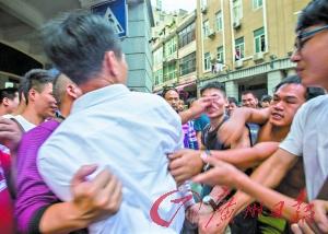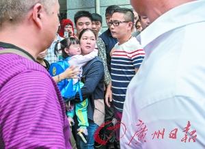 听到呼救声,在马路对面看档口的彭老板往呼喊声的方向看去,发现一名30岁左右的妇女和一个穿着白衬衣的60岁上下的老伯,正在争抢一个两三岁的小女孩。妇女一边大声呼喊,一边死死地拽住女童的一只脚,而老伯则抱住了小女孩的大半个身子,互不相让。