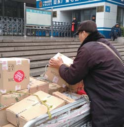 市中区顺丰快递分网店的负责人廖经理介绍,“双十一”期间,每天的派送量多了一倍不止。廖经理说,该网点的管理范围南北从经十路到经一路,东西从泉城广场到纬二路,就这一小片区域,今天一上午的派送量就达一万件。“到中午12点,派送的快件量已达一万件,整个网点80多个派送员都在派送,每个派送员每天要派送100多件。”