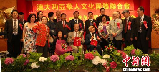 中新网悉尼11月28日电 (记者 赖海隆)百岁老人李承基28日在悉尼获得由澳大利亚华人文化团体联合会颁发的澳华文化界终身成就奖,萧红和黄庆辉则获得了澳华文化界杰出贡献奖。