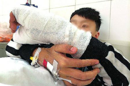 原标题:捡到子弹在家玩12岁男孩拇指被炸断