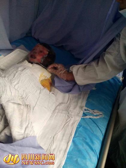 起火后孩子的爷爷跑出来,又听到房子里有孩子的哭声,急忙冲进房里将孩子抢了出来。孩子被抢出来后,已经说不出话了,浑身被烧的焦黑,家人急忙将孩子送到医院,后被转到宜宾市第一人民医院。