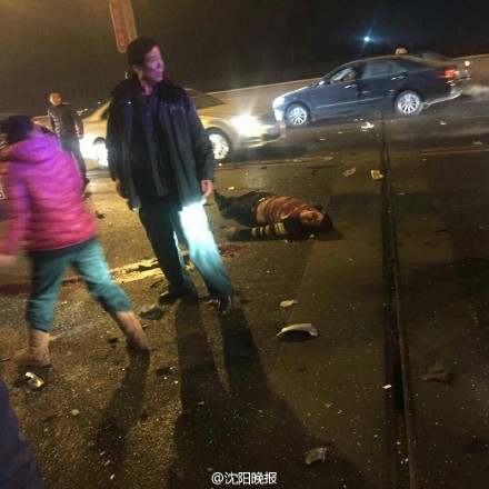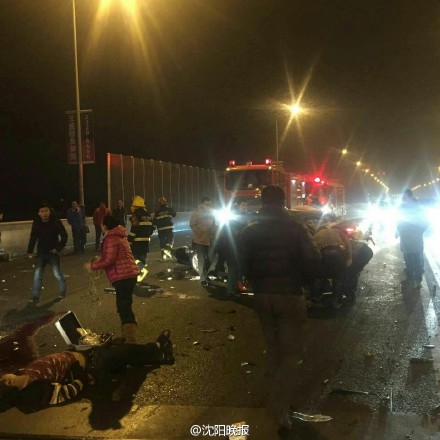 【跨年夜的悲剧。。。】2015年12月31日23:30,沈阳市黄河北大街三环跨线桥发生严重交通事故,并发生二次事故。死者为开轩逸车。肇事车先撞上 轩逸又撞上对向车道俩出租车。交警处理时候,一别克车超车未超好又撞上事故现场。共造成一死七伤,包括一现场的交警。具体情况正调查中。