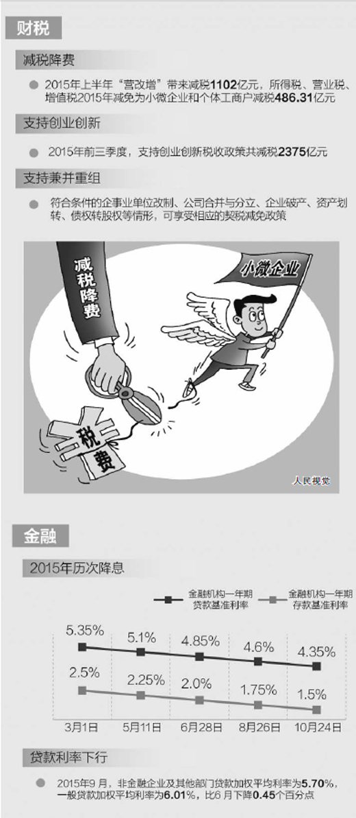 去年以来,我国实施多项减税降费的措施,帮助实体经济特别是小微企业降低成本。国家税务总局公布的数据显示,去年上半年“营改增”带来减税1102亿元,所得税、营业税、增值税减免政策共为全国小微企业和个体工商户减税486.31亿元。去年前三季度,我国支持创业创新税收政策共计减税2375亿元。同时,国家将小微企业增值税和营业税优惠政策执行期限延长至2017年底。